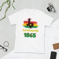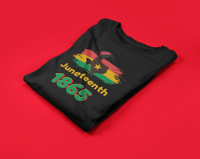 Available in five colors - Black, Navy, Dark Heather, Sport Gray, and White - our T-shirt makes a great gift for any occasion. Don't miss out on this stylish and meaningful addition to your wardrobe. Order now and wear your Juneteenth pride on your sleeve!